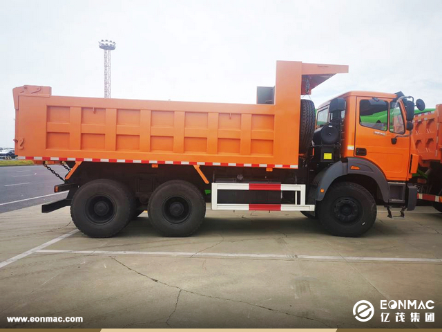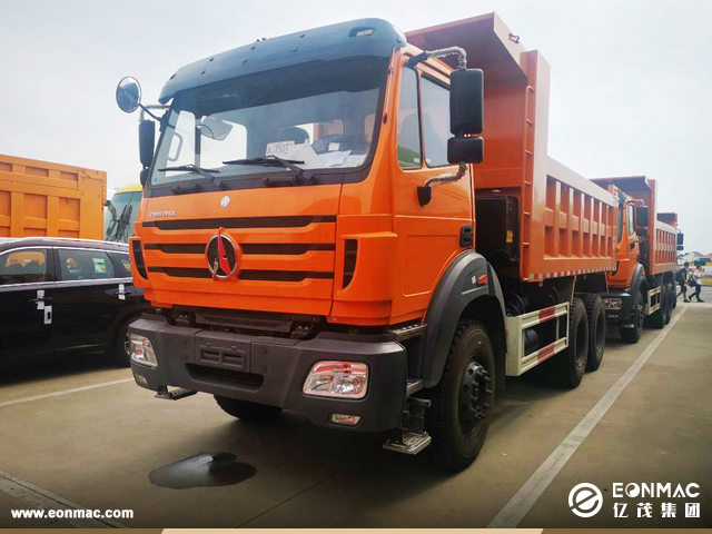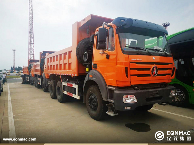 2020年10月9日,亿茂集团出口十台北奔自卸卡车到非洲,用于道路建设项目。