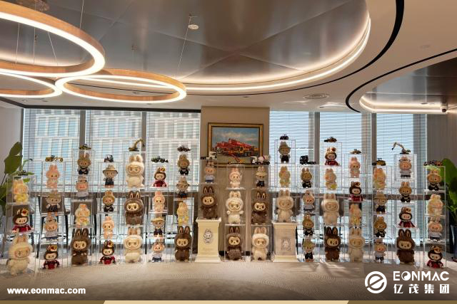 亿茂集团上海总部大厅迎来了一些超级可爱的“小怪兽”!知名潮玩IP——THE MONSTER家族的大型艺术玩偶(大娃)摆放成一个玩偶墙,化身为办公空间中最亮眼的艺术风景线。