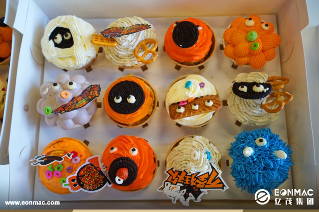 美食同样是一大亮点。团队精心准备了造型各异的万圣节主题杯子蛋糕、香气浓郁的披萨、清爽的水果拼盘,还有奶茶饮品。甜品的可爱造型和浓郁香气让人食欲大开,大家一边享用美食,一边拍照打卡。